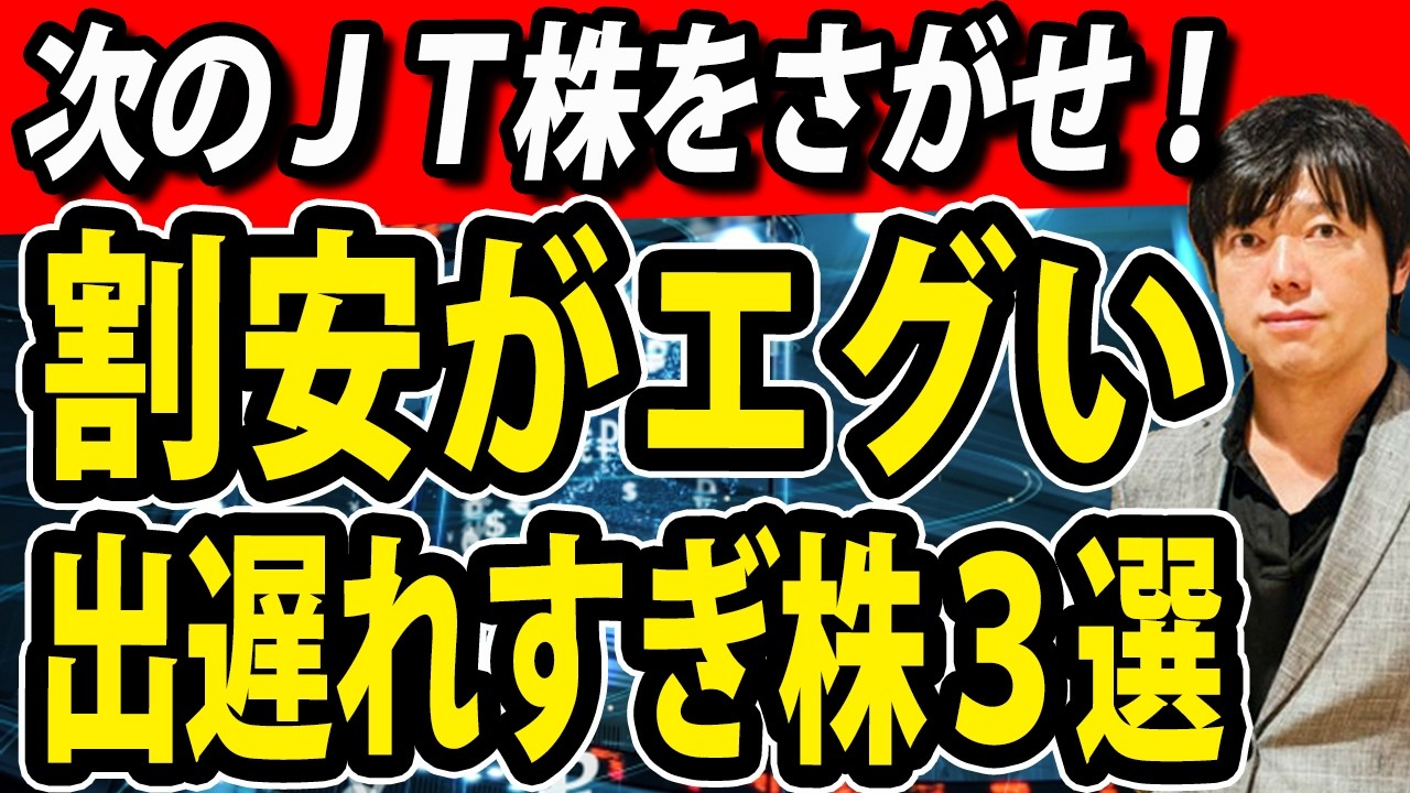 今日の動画では、次のJT株を探せ!というテーマでエグい下落を狙い時な割安株3選を独自の視点で解説しました。