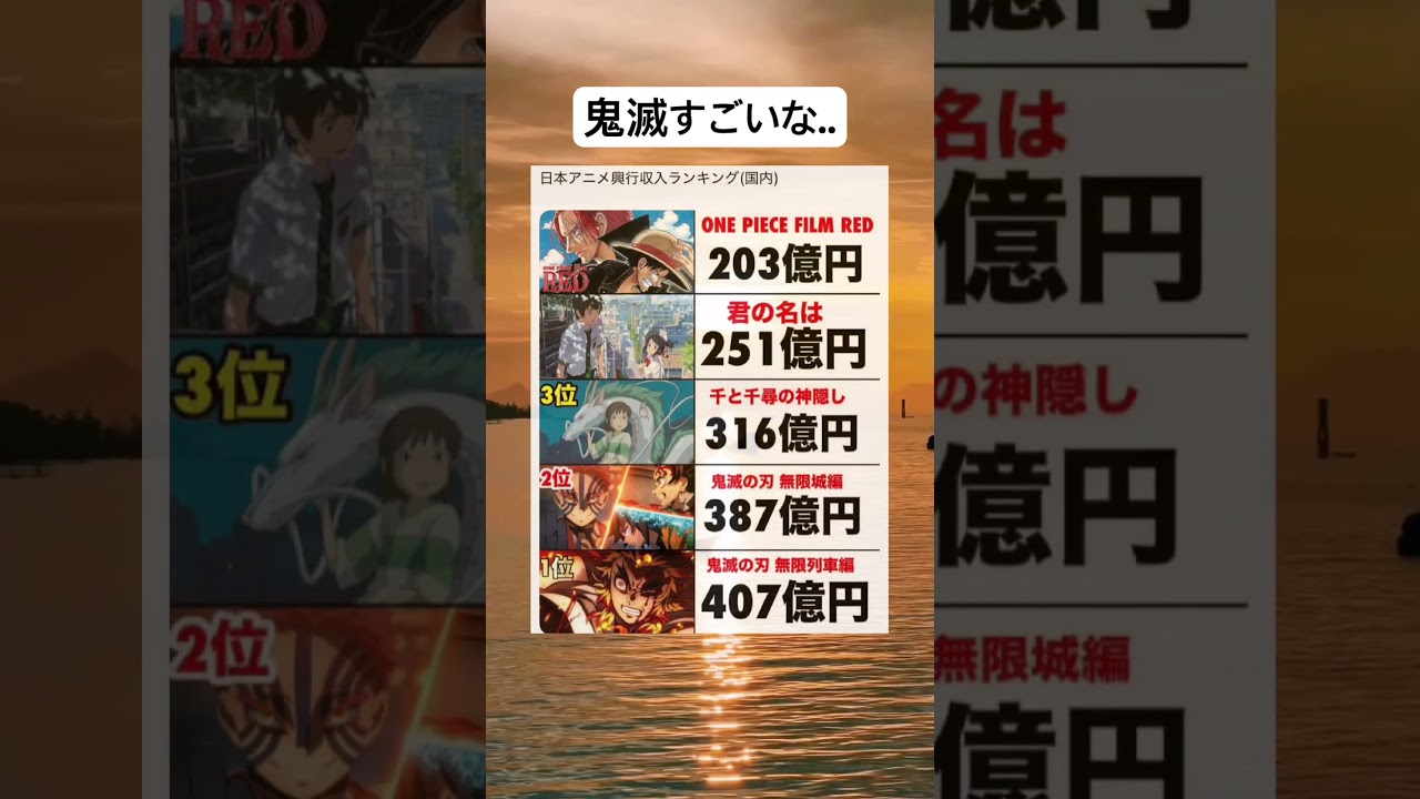 Share Facebook Twitter Pinterest LinkedIn 映画興行収入ランキング#鬼滅の刃 #映画 #kimetsunoyaiba #anime #アニメ #鬼滅の刃 #アニメ #映画 #興行収入 #おもしろ movie映画映画興行収入