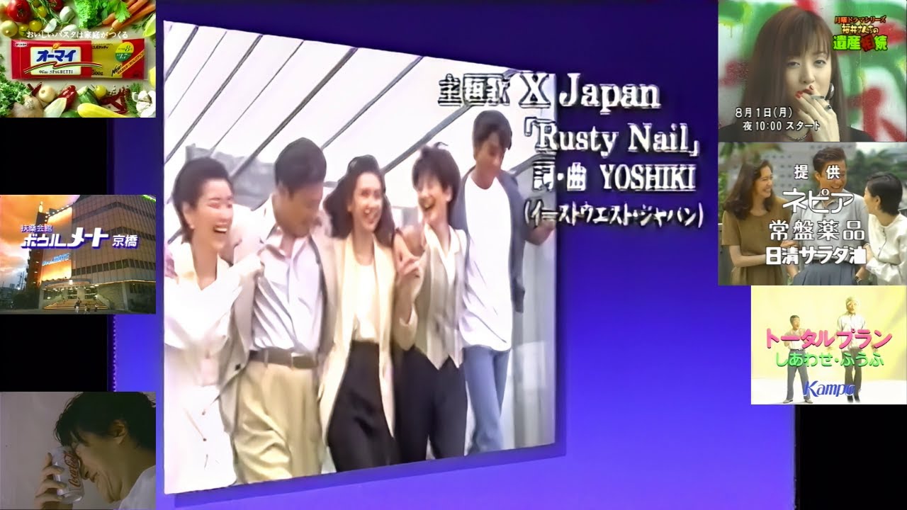 X JAPAN『Rusty Nail』(1994.7.25 『君が見えない』ED+終盤提供CM(オーマイ他+「福井さんちの遺産相続」番宣+ED提供+終了後CM(京橋ボウルメート他)【画質向上版】