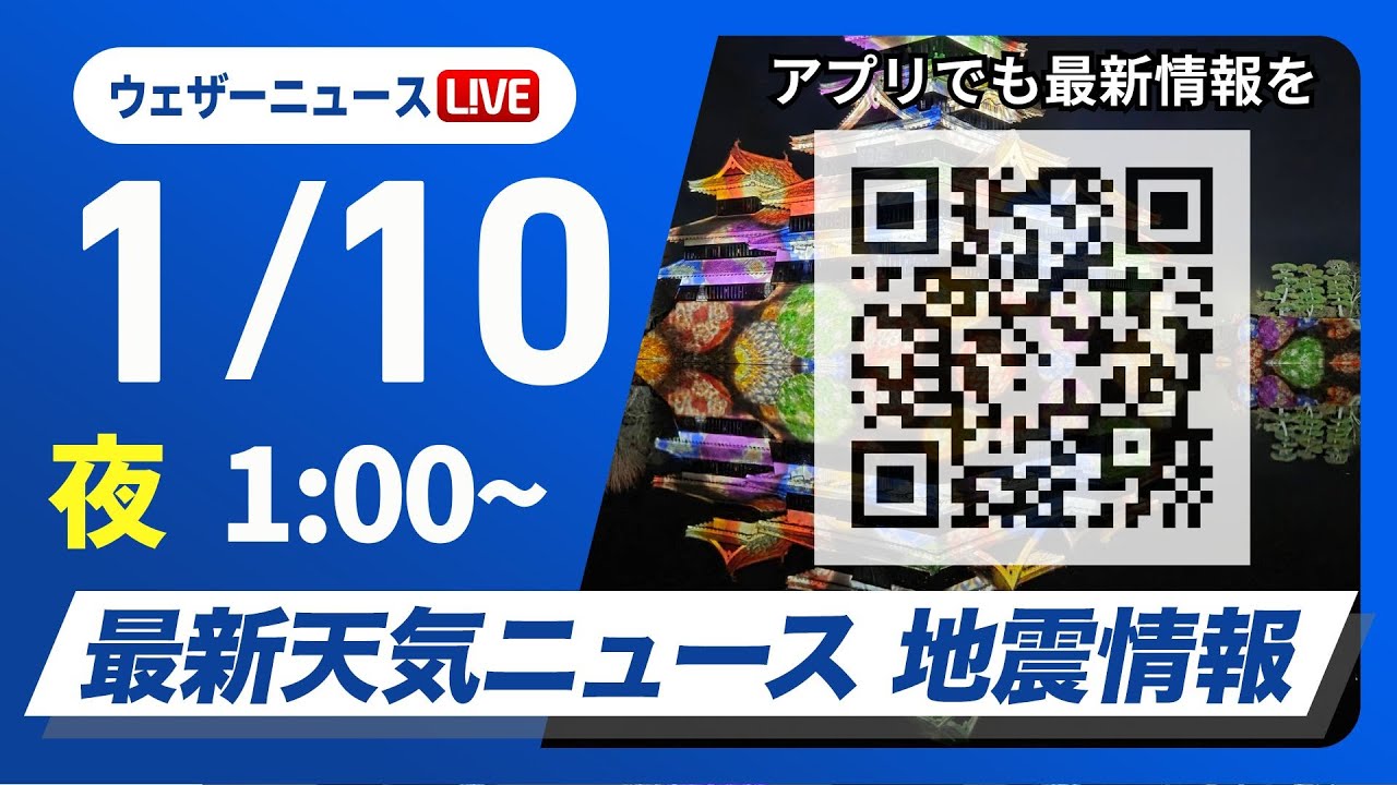 【ライブ】最新天気ニュース・地震情報 2026年1月10日(土) 1:00〜/三連休は今冬最強の寒気が南下〈ウェザーニュースLiVE〉
