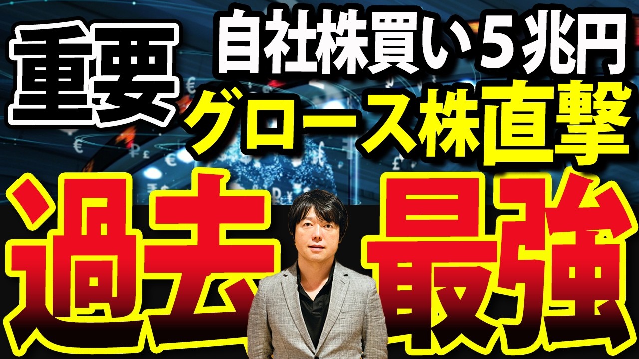 今日の動画では日本株の自社株買いが過去最強である点と、グロース株が急上昇、株価の動き本物かを独自の視点で解説しました。