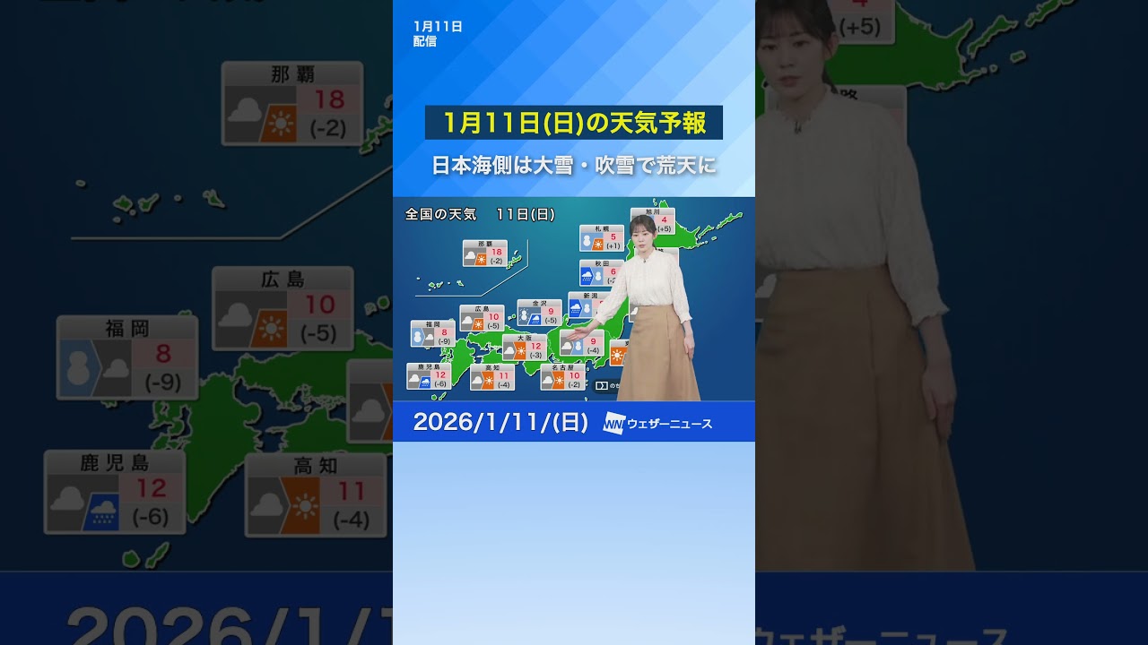 【1月11日(日)の天気予報】日本海側は大雪・吹雪で荒天に #通勤タイパ #天気 #news #今日の天気 ウェザーニュースとauのコラボレーション 朝に役立つ情報をタイムパフォーマンスよくショートに手に入れよう。 通勤の時間に「天気」「学び」「癒し」「季節」「占い」などの情報をわかりやすく、楽しくショート動画で視聴できます。 毎朝の通勤時間が待ち遠しくなる! #pr 2026NEWSアナウンサーウェザーニュースニュース予報台風地震天気日本の天気予報気温気象気象予報士減災防災