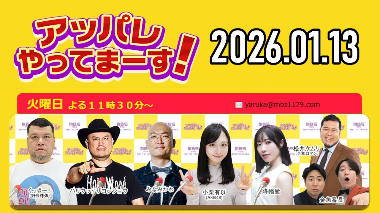 Share Facebook Twitter Pinterest LinkedIn 【2026.01.13】アッパレやってまーす!火曜日 【くっきー!、ハリウッドザコシショウ、みなみかわ、小栗有以 (AKB48)、松井ケムリ (令和ロマン)、降幡愛】 メンバーはどんな年末年始を過ごしたのか? 是非、お聞きください! くっきー!(野性爆弾)、ハリウッドザコシショウ、みなみかわ、小栗有以 (AKB48)、金魚番長 #アッパレやってまーす #くっきー #小栗有以 #降幡愛 celebrity小栗有以