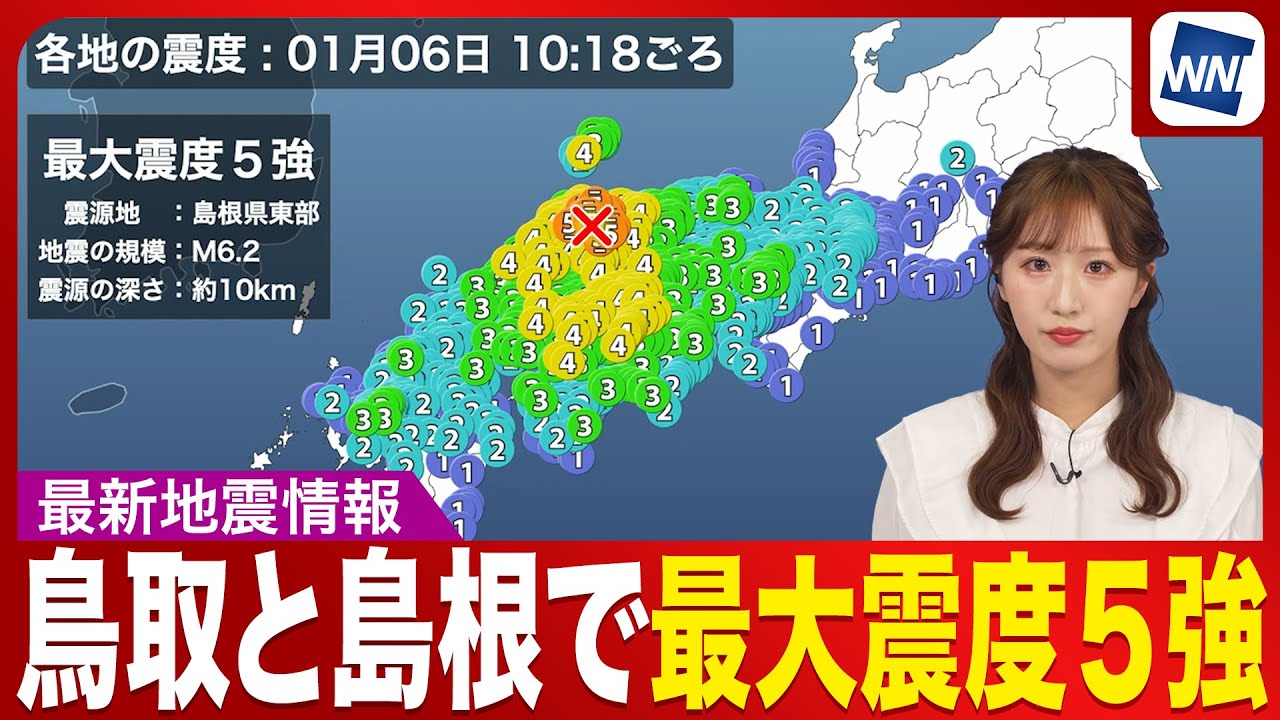 【最大震度5強】島根県東部でM6.2の地震 鳥取県と島根県で震度5強 津波の心配なし