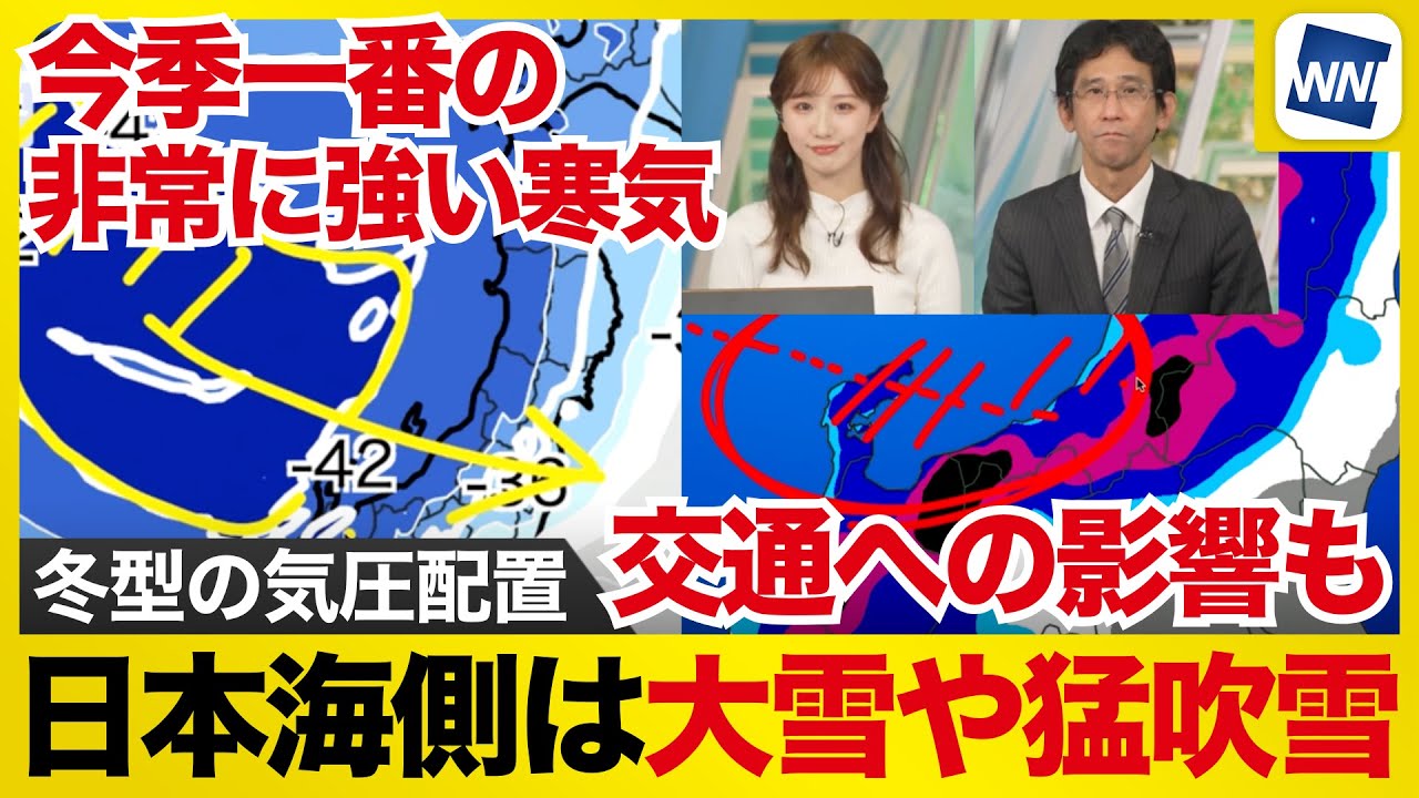 【大雪情報】今季一番の非常に強い寒気 日本海側を中心に大雪や猛吹雪