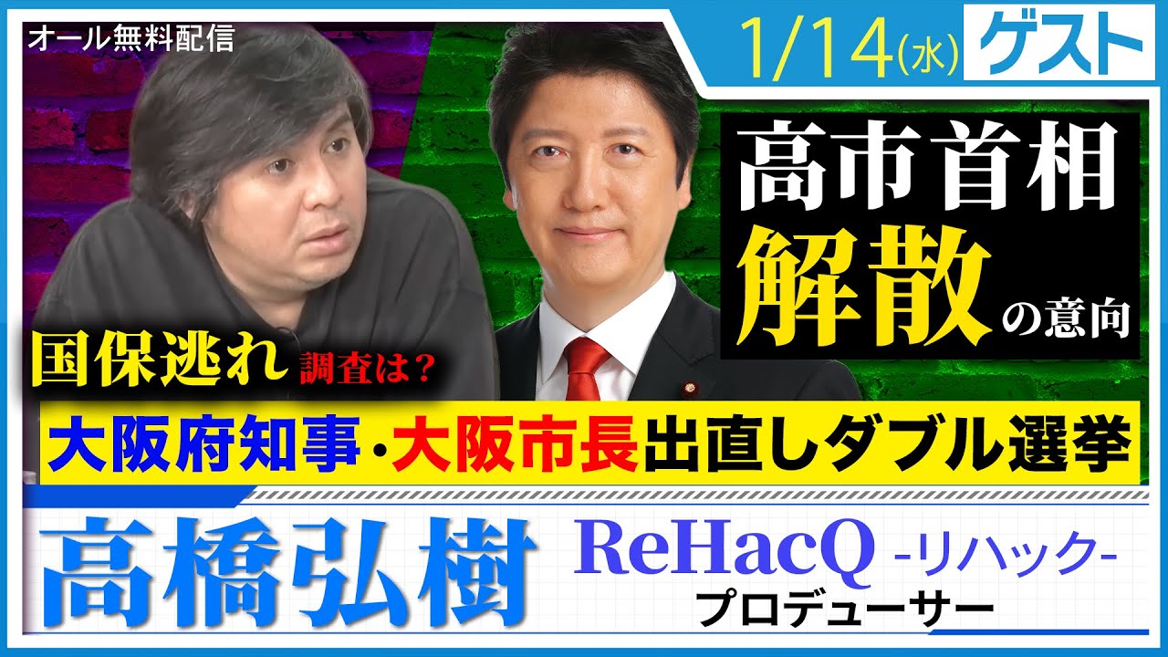 高市政権 国会冒頭解散の意向! そして国保逃れ渦中に、大阪府知事・大阪市長 出直しダブル選挙!ReHacQ高橋弘樹プロデューサーと緊急解説