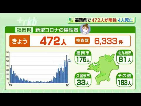 福岡県は14日、新型コロナの検査で新たに472人が陽性だったと発表しました。