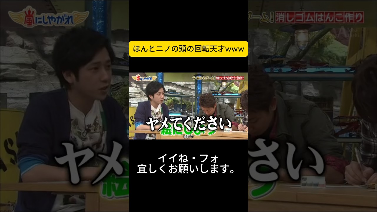 Share Facebook Twitter Pinterest LinkedIn ほんとニノの頭の回転天才www #嵐 #嵐にしやがれ #大野智 #二宮和也 #櫻井翔 #相葉雅紀 #松本潤 celebrity田中彩子