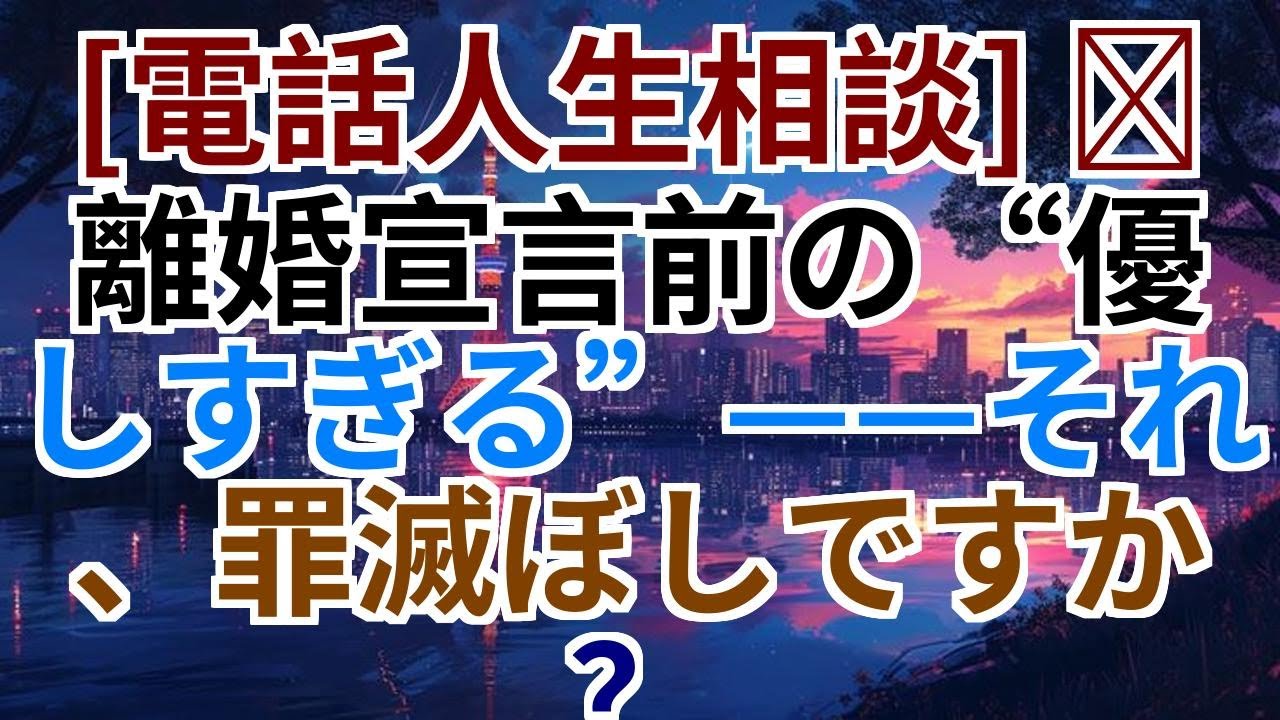 Share Facebook Twitter Pinterest LinkedIn [電話人生相談] 📟 離婚宣言前の“優しすぎる”——それ、罪滅ぼしですか? [電話人生相談] 📟 離婚宣言前の“優しすぎる”——それ、罪滅ぼしですか? NEWS離婚宣言