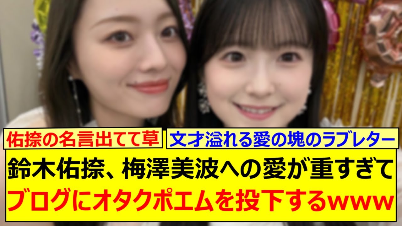 鈴木佑捺、梅澤美波への愛が重すぎてブログにオタクポエムを投下するwww【乃木坂46・乃木坂配信中・乃木坂工事中】