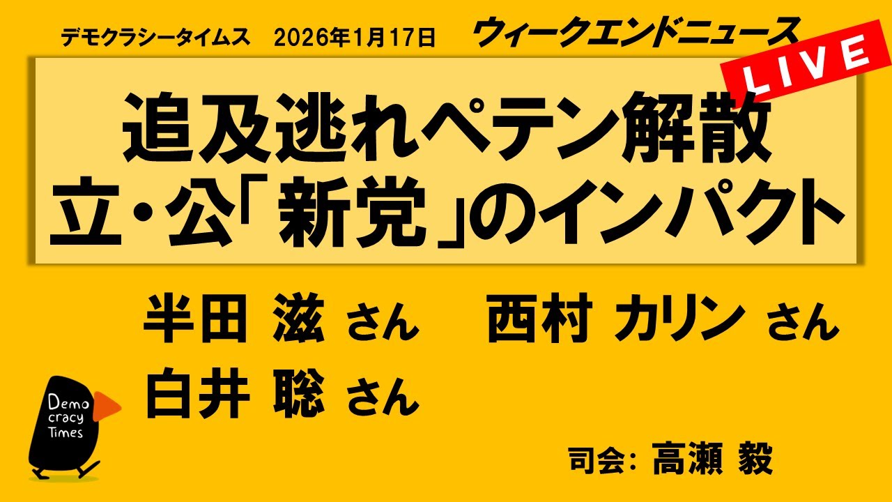 追及逃れペテン解散 立・公「新党」のインパクト (半田 滋/西村 カリン/白井 聡) ウィークエンドニュース 20260117