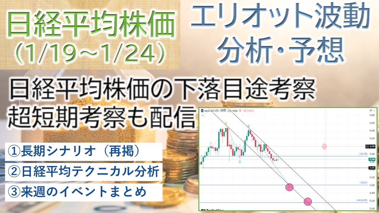 【日経平均株価予想(1/19~1/24)】日経平均株価下値目途考察。超短期考察も配信#日経平均#株価予想#デイトレ