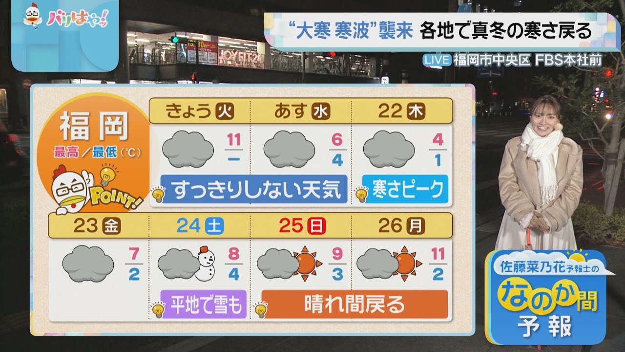 佐藤菜乃花(さとう・なのか)気象予報士のお天気情報です。福岡と佐賀の20日の天気をお伝えします。