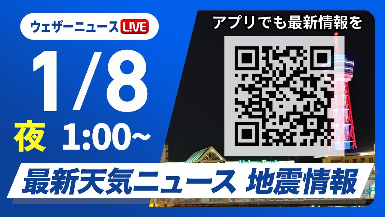 【ライブ】最新天気ニュース・地震情報 2025年1月8日(水)/日本海側で雨や雪<ウェザーニュースLiVE>