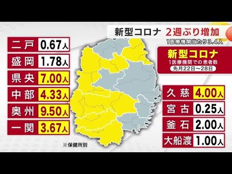 2025年12月28日までの1週間に岩手県内で確認された新型コロナウイルスの新規患者数は、1医療機関当たり3.4人となり2週ぶりに増加しました。