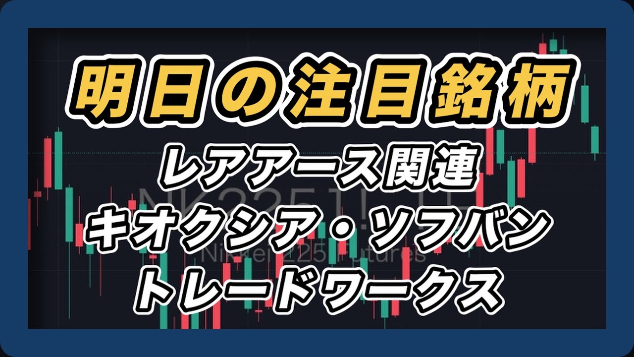 【明日の注目銘柄&日経平均展望 金利上昇関税問題で先物急落】レアアース、岡本硝子・東洋エンジニアリング・東邦亜鉛・キオクシア・ソフトバンクグループ・トレードワークス