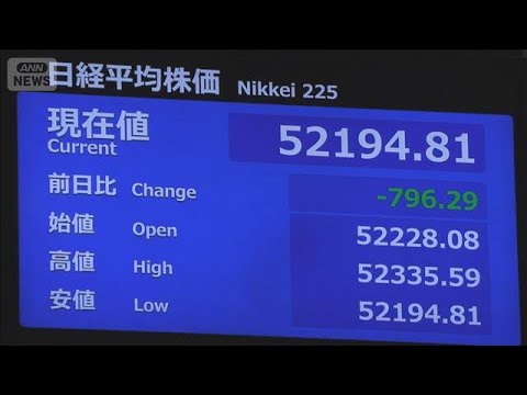 【速報】日経平均株価 きょうも値下がり グリーンランド巡る地政学的リスクなど背景(2026年1月21日)