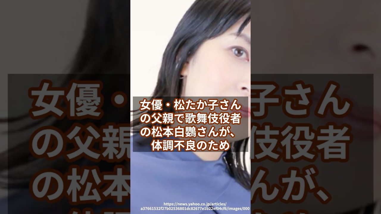 女優・松たか子さんの父で歌舞伎役者の松本白鸚さん(83)が体調不良で休演。昨年8月には車椅子での通院姿が目撃されていました。松さんは実家と自宅を往復し、献身的にサポート。今年は父親のサポートを優先し、芸能活動を調整していくとのことです。
