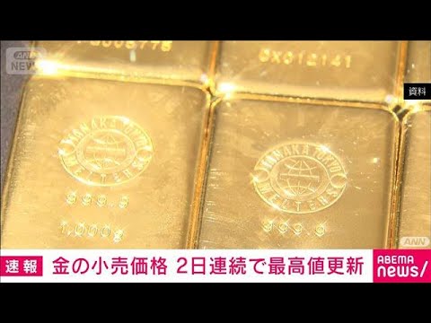 金の国内小売価格が2日続けて最高値を更新しました。