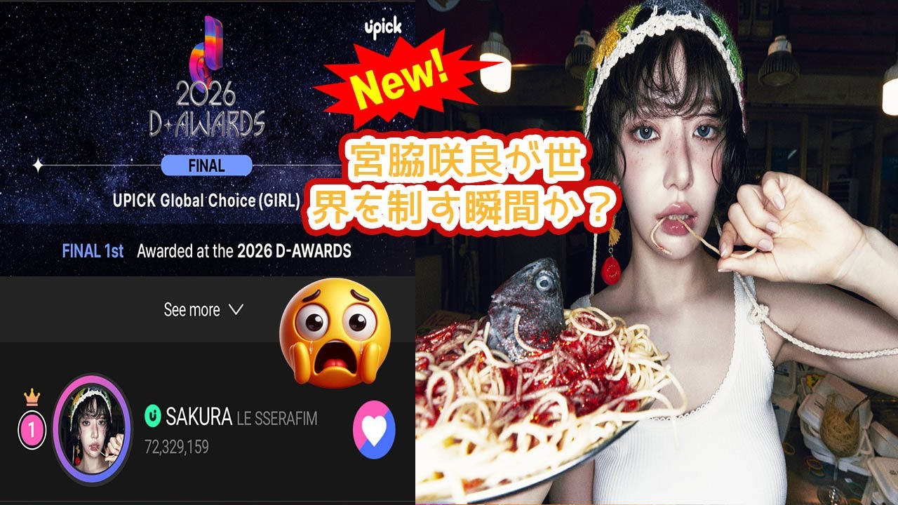 LE SSERAFIMのSAKURA(サクラ)が「2026 D-AWARDS UPICK Global Choice (Girl)」部門で圧倒的なリードを築いている現状を、専門家の視点から徹底深掘り。残り7日間の投票期間における戦略、アプリの活用法、そして彼女のグローバルな影響力の秘密を解説します。この歴史的瞬間を見逃さないために必見の内容です!