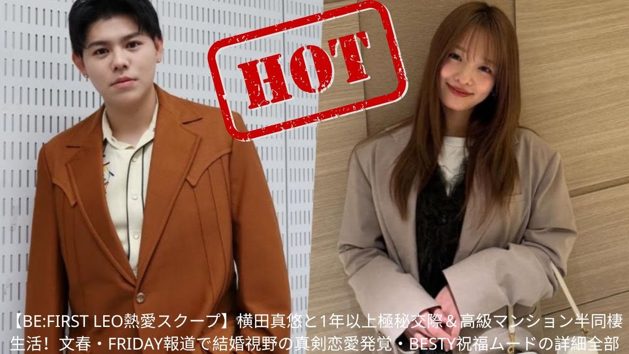 【BE:FIRST LEO熱愛スクープ】横田真悠と1年以上極秘交際&高級マンション半同棲生活!文春・FRIDAY報道で結婚視野の真剣恋愛発覚・BESTY祝福ムードの詳細全部