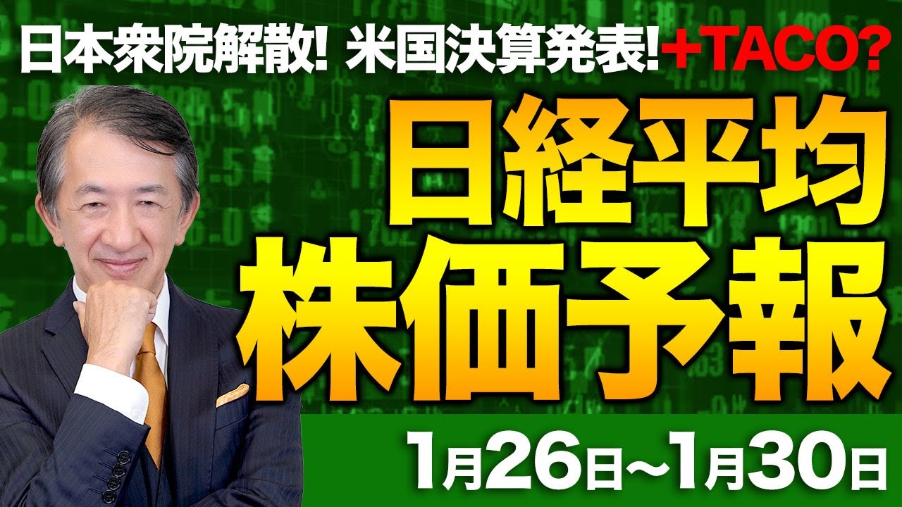 【株価予想】最新の日経平均×来週の株価見通し/衆院解散、総選挙!米国企業、決算発表!TACOトレード再び!日銀、政策金利の据え置き!続伸も上値重い?/【1/26〜1/30】