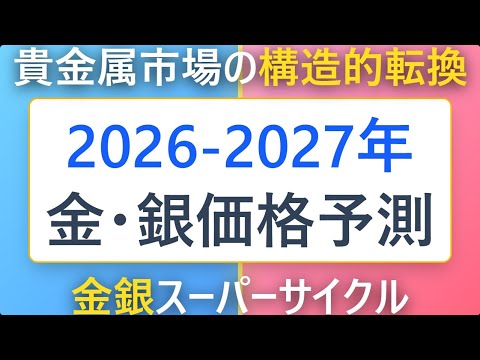 【2026-2027年 貴金属市場の歴史的転換点】 かつてない「金銀スーパーサイクル」が幕を開けようとしています。本動画では、マクロ経済、地政学、そして産業構造の劇的な変化から導き出された、2026年末および2027年末の価格予測の全貌を徹底解説します。