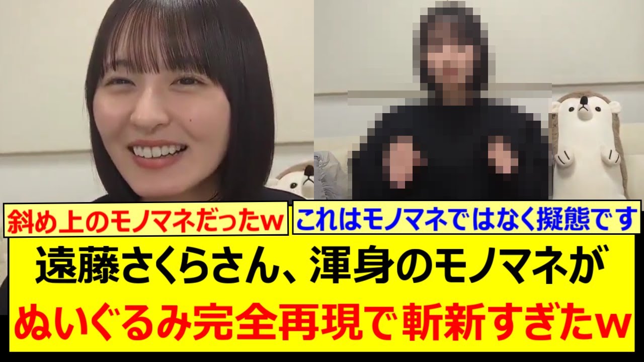 遠藤さくら、渾身のモノマネがぬいぐるみ完全再現で斬新すぎたwww【乃木坂46・のぎおび・乃木坂配信中・乃木坂工事中】#乃木坂46 #乃木坂 #遠藤さくら VOICEVOX:四国めたん・春日部つむぎ・玄野武宏 https://voicevox.hiroshiba.jp/ BGM:追いかけっこキャッハー https://dova-s.jp/bgm/play6388.html celebrityネットの反応乃木坂乃木坂46乃木坂工事中乃木坂配信中反応集遠藤さくら
