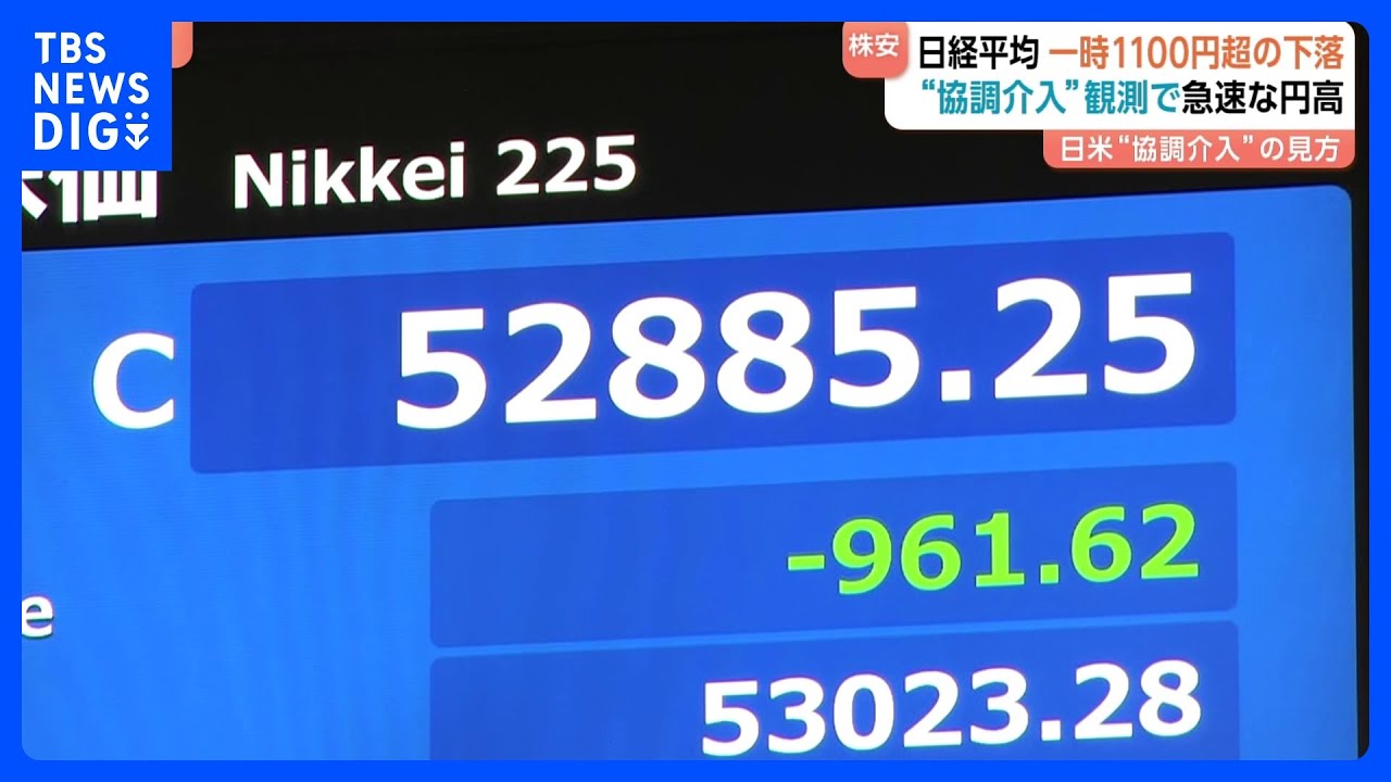 【速報】日経平均 961円安の5万2885円で取引終了 円高進行で株価押し下げ 日米協調介入への警戒感から|TBS NEWS DIG