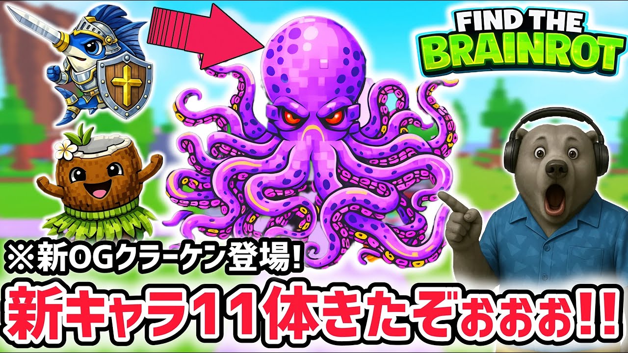 【速報】ブレインロットを探せ最新キャラ情報!新たなOGキャラ「クラーケン」が追加された全11体の入手方法まとめ!【AIモンスター/ロブロックス/ROBLOX】