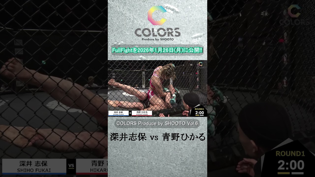 【Highlight】深井 志保 vs 青野 ひかる 2026年1月18日 COLORS Produce by SHOOTO Vol.6 [第8試合]スーパーアトム級5分2R ◯青野 ひかる(FIGHT LYNK)49.8kg S 1R 3’42” ※アームロック ×深井 志保(N★TRUST)49.6kg [レフェリー]福田 正人 FullFigt動画は1月26日(月)に公開!! 是非チャンネル登録をしてお見逃しなく!! celebrityKoMartial ArtsMMAshootosubmission修斗名勝負格闘技総合格闘技衝撃青野楓