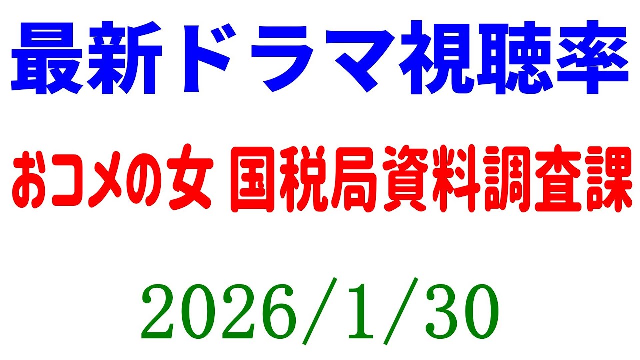 おコメの女 視聴率ダウン!視聴率速報☆2026年1月30日
