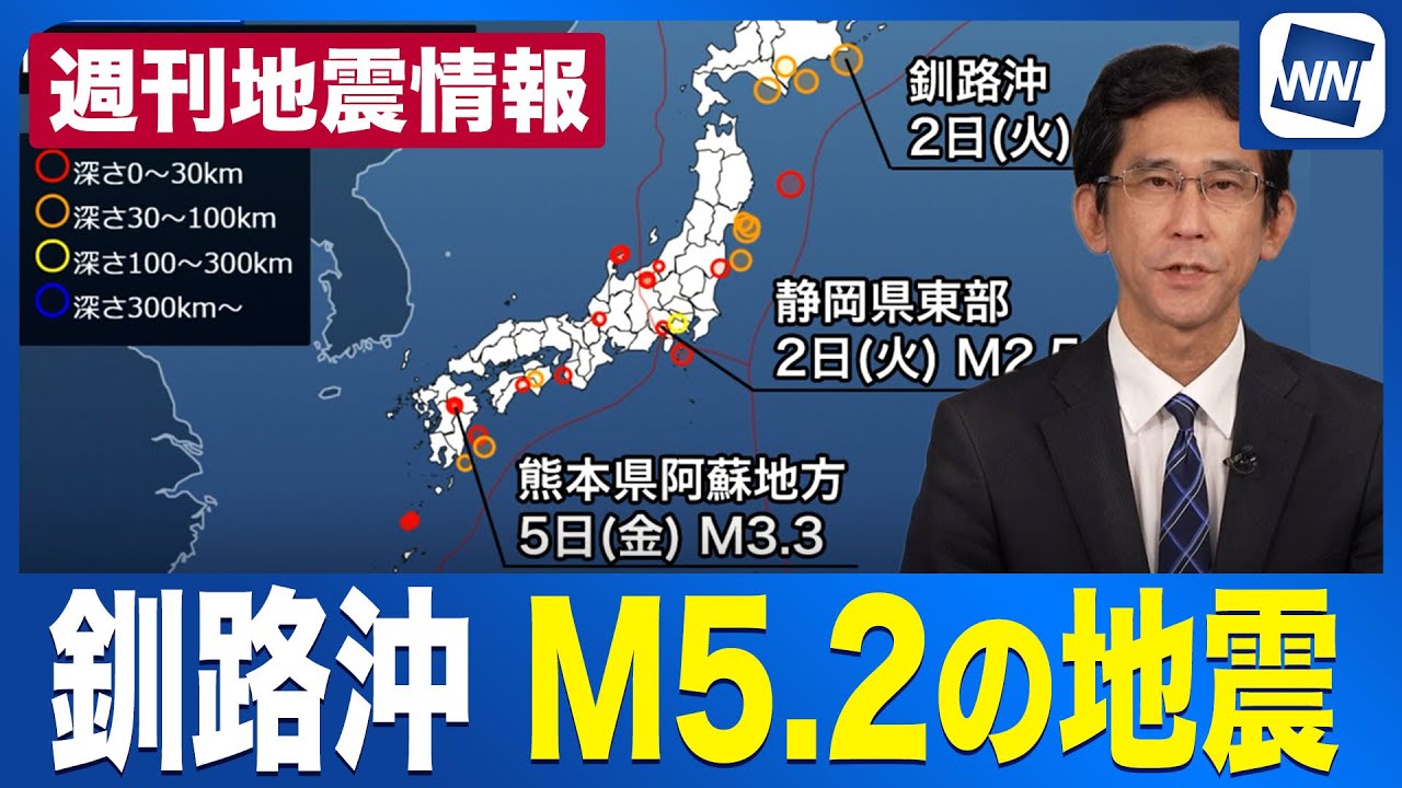 【週刊地震情報】釧路沖でM5.2の地震 今年3回目の震度4