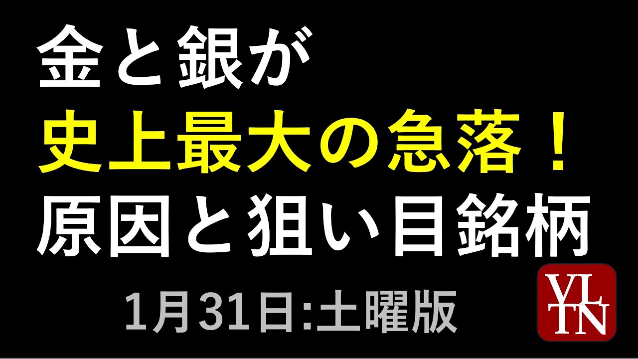 金と銀が史上最大の急落!原因と狙い目銘柄。1月31日:土曜版
