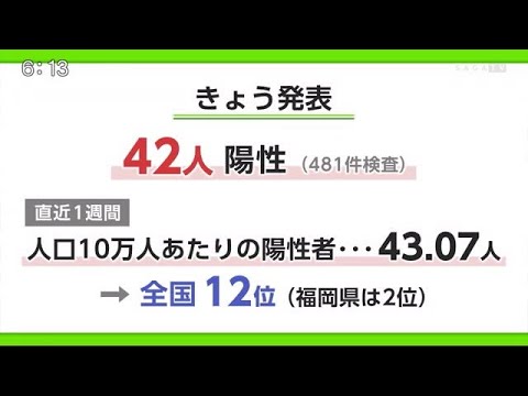 Share Facebook Twitter Pinterest LinkedIn 県内の新型コロナウイルスの状況です。 県は14日、新たに481件の検査があり42人の陽性が確認されたと発表しました。 県によりますと直近1週間の人口10万人あたりの陽性者は43.07人で、全国で12番目に高くなっています。 現在の病床使用率は49.9%、ホテル使用率は59.6%といずれも過去最高です。 山口知事は14日「県の東部・中部の病床は特にひっ迫している」と危機感を示しています。 県内ではこれまでに2165人の陽性が確認され、15人が死亡しています。 コロナ陽性佐賀県新型コロナ