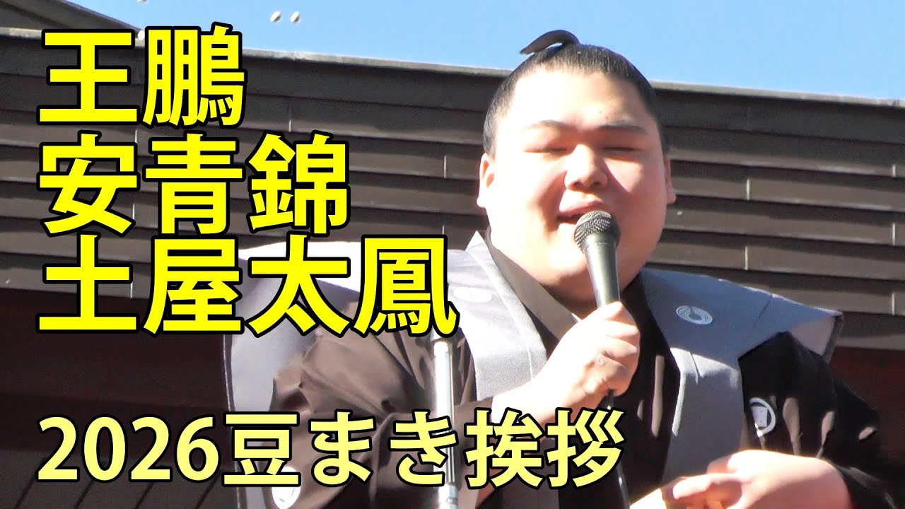 Share Facebook Twitter Pinterest LinkedIn 安青錦 王鵬 土屋太鳳… 豆まきにたくさんの芸能人 2026豊川稲荷東京別院節分会 2026.2.3 来場所に横綱を目指す安青錦や王鵬、さらに、土屋太鳳、内藤剛志などたくさんの芸能人が登場した豊川稲荷東京別院節分会の豆まき。挨拶の完全ノーカットです。気に入ったら、チャンネル登録をお願いします。 celebrity土屋太鳳