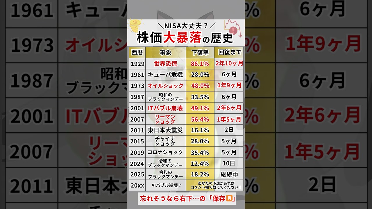 9割が忘れてる…NISA大丈夫?株価の大暴落の歴史を紹介#お金 #資産運用 #投資 #投資初心者 #新nisa #NISA #楽天#無駄遣い#節約 #金融