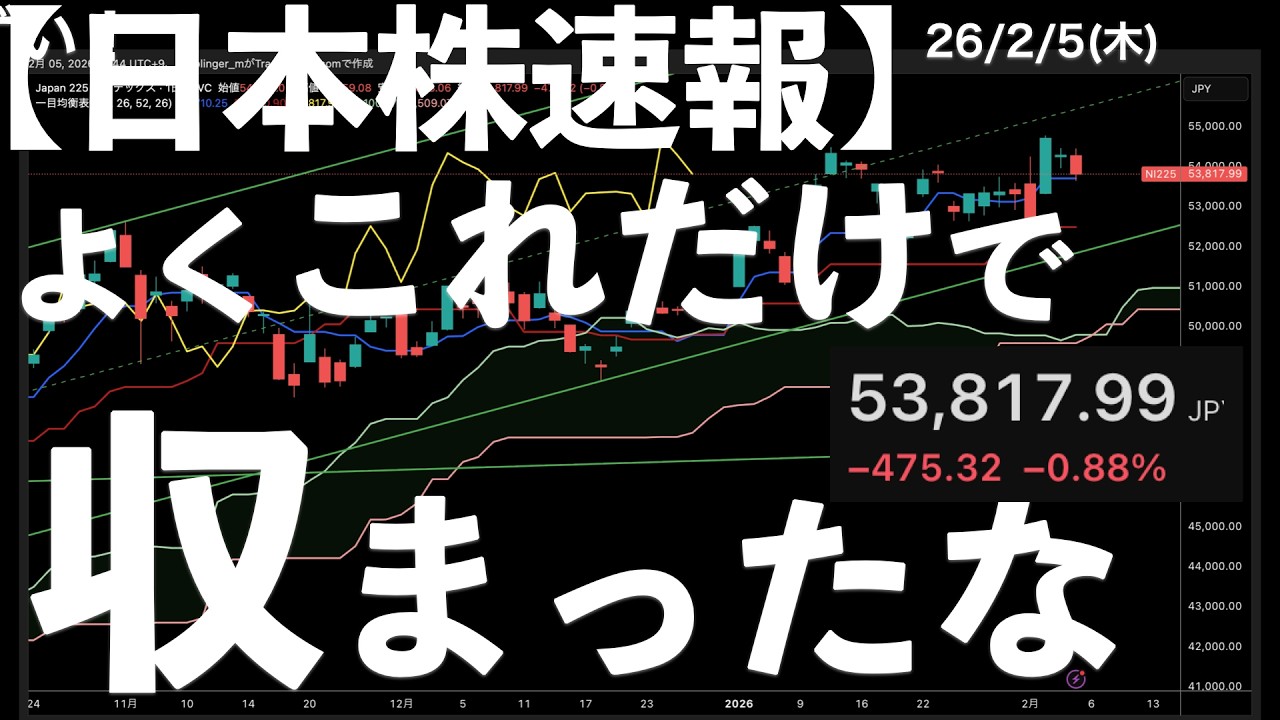 【日本株速報】26/2/5 よくこれだけで収まったなと思える売買代金ランキング #日本株 #半導体 #topix #nvidia