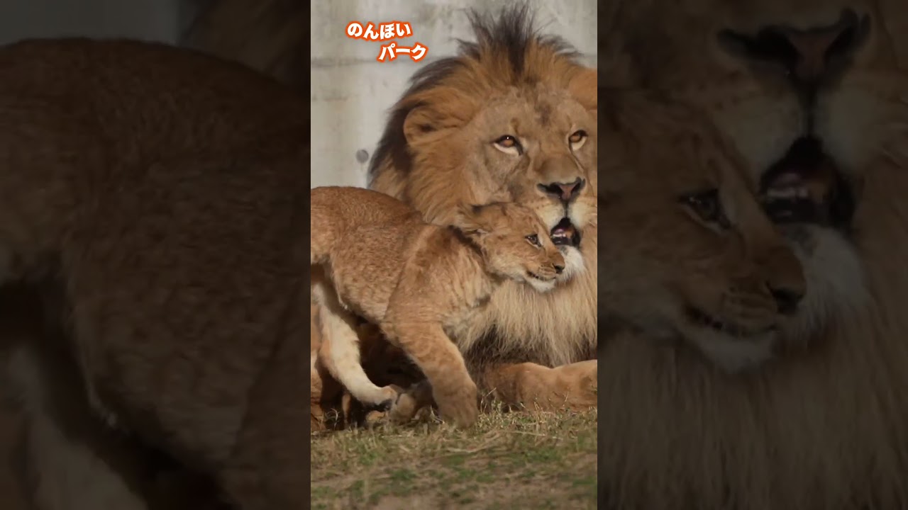 アースと二人の息子👑のんほいパークライオン🤴Safe with Dad 🦁#shorts #lion #baby のんほいパークのライオン親子🦁 父アースのそばに来て、息子のデンとアルが仲良く遊んでいます。 近くでそっと見守るアースパパ。 安心感に包まれた、親子の姿です💛 celebrityのん