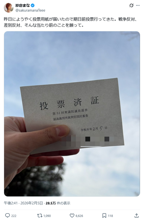 1:それでも動く名無し:2026/02/05(木) 23:25:22.83 ID:1gyEuDHx0 高市早苗さんの批判をするなとめちゃくちゃ荒れてる… 4:それでも動く名無し:2026/02/05(木) 23:30:13.56 ID:eWPqDqBs0戦争反対で炎上する素晴らしい国 5:それでも動く名無し:2026/02/05(木) 23:30:36.92 ID:uZMbQM/l0いうほど叩かれる要素あるかこれ 2ch2chblognews2ch