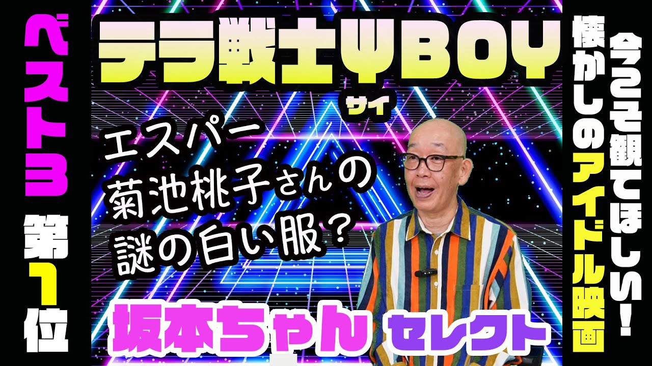 昭和やアイドル・音楽大好き「坂本ちゃん」が選ぶ!『今こそ観てほしい!懐かしのアイドル映画 ベスト3』第1位は…「テラ戦士ΨBOY(サイボーイ)」(1985年/昭和60年 公開)!主演の菊池桃子さん主演作。レコードデビュー翌年、まさに人気絶頂の中で公開されたSFファンタジー映画。菊池桃子さん演じるMOMOKOは実はエスパーだった。同じくエスパーの少年たちが集まり…。配信では観ることのできないこの名作映画を観る方法を坂本ちゃんが教えます!