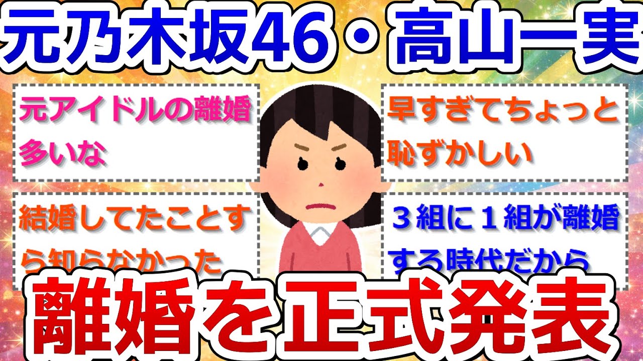 元乃木坂46・高山一実、ふくらP 離婚を正式発表「前向きに話し合いを重ねた末…」 ガールズチャンネル通称ガルちゃんの有益スレ面白スレをまとめてます。 よろしくお願いします。 celebrityガールズちゃんねるガールズチャンネルまとめカルちゃんガルちゃんまとめ不倫彼氏旦那有益スレ有益トピ浮気高山一実