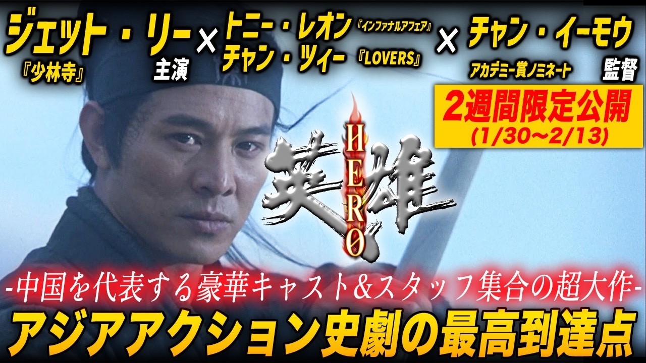 【無料映画】HERO ジェットリー主演 トニーレオン、チャンツィーほか豪華キャスト出演 アクション超大作!