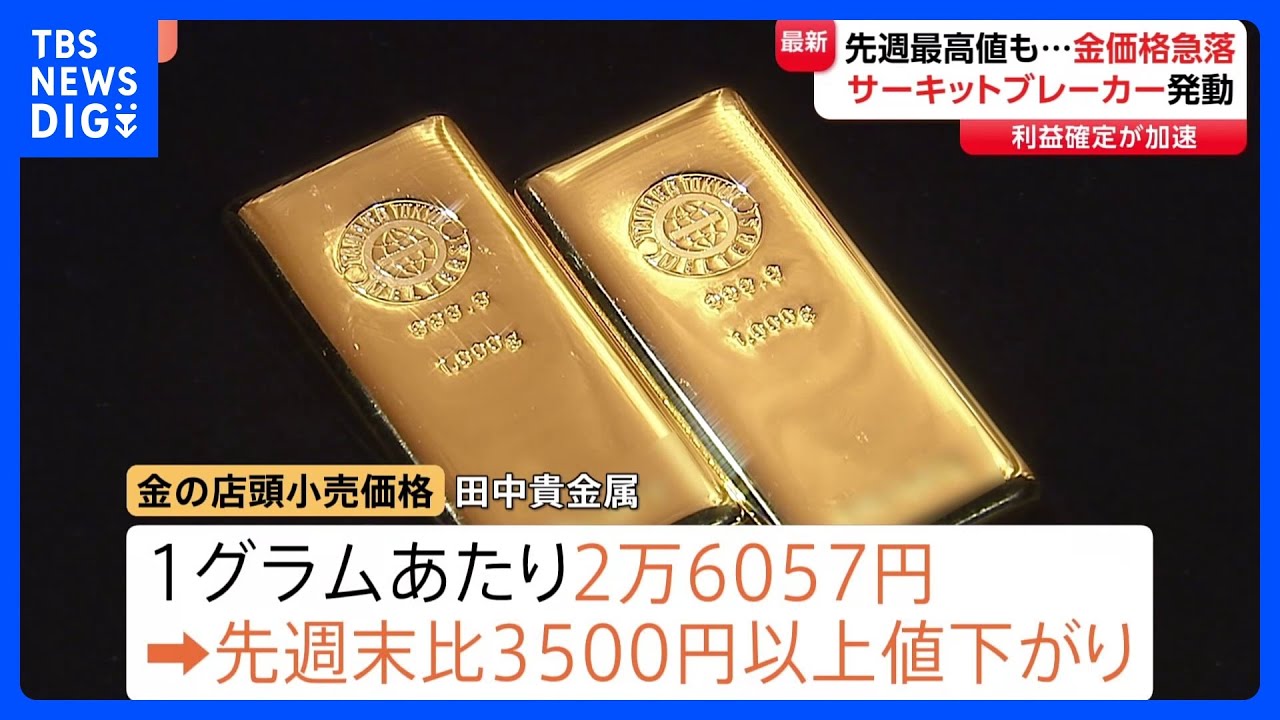金価格が急落 3500円以上も値下がり 「サーキットブレーカー」発動も “FRB人事”で利下げに対する不透明感が拡大|TBS NEWS DIG