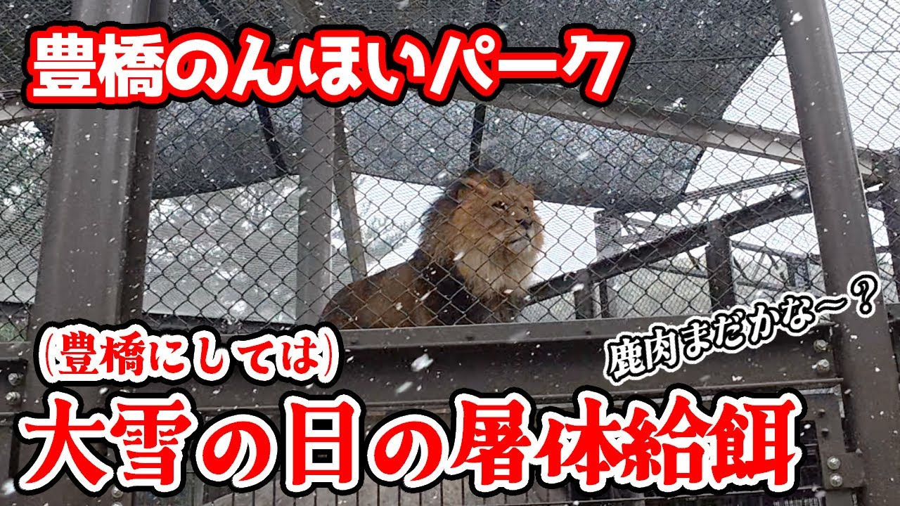 「のんほいパークに雪が積もったよ~!!」豊橋にしては大雪の日曜日、屠体給餌の日。寒さのせいかベガちゃんの歩き方がちょっと心配ですが、雪に震えながらもみんな元気です【のんほいパーク不定期更新】