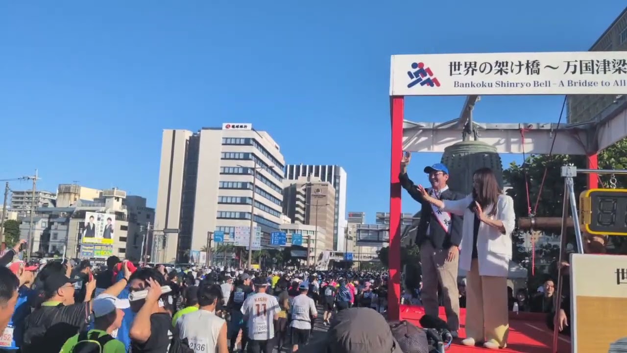 ●NAHAマラソンがスタート 2万6380人エントリー 仲間由紀恵さんが万国津梁之鐘を打ち鳴らす