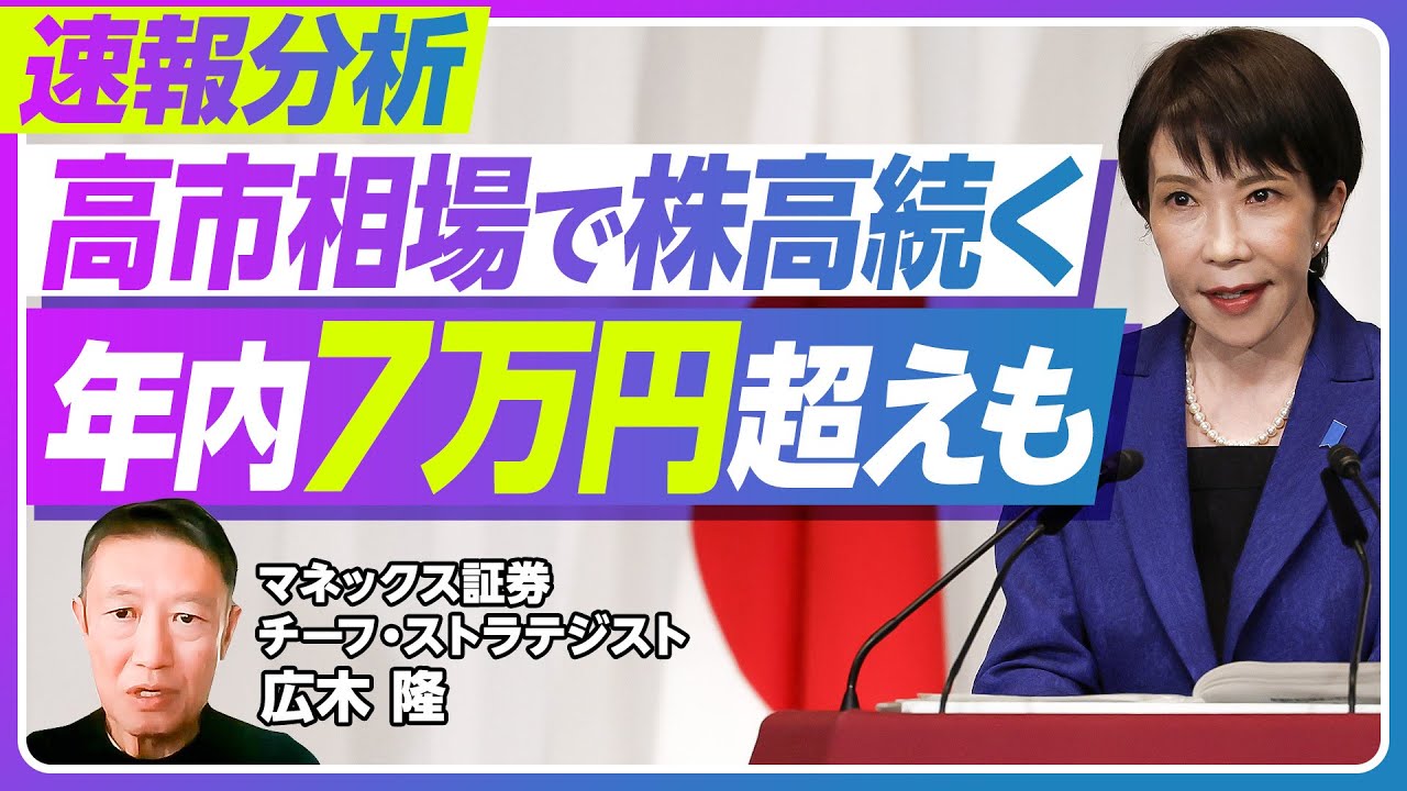 【速報分析:高市相場は続く。日経平均は年内7万円超えも】政治の安定性がプラス/PERが25倍になったら/年内6万円台半ばは堅い/リスクは米国発の不確実性/円安にも要注意【マネックス証券・広木隆】