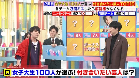 女子大生100人が選ぶ付き合いたい芸人TOP10 1位レインボー池田 2位レインボージャンボ 3位かまいたち濱家 4位EXIT兼近 5位麒麟川島 6位アインシュタインゆず兄 7位ジャルジャル後藤 8位チョコプラ長田 9位NONSTYLE石田