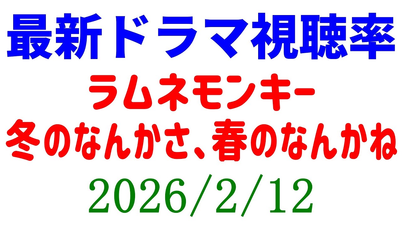 ラムネモンキー 視聴率下がり続ける!視聴率速報☆2026年2月12日