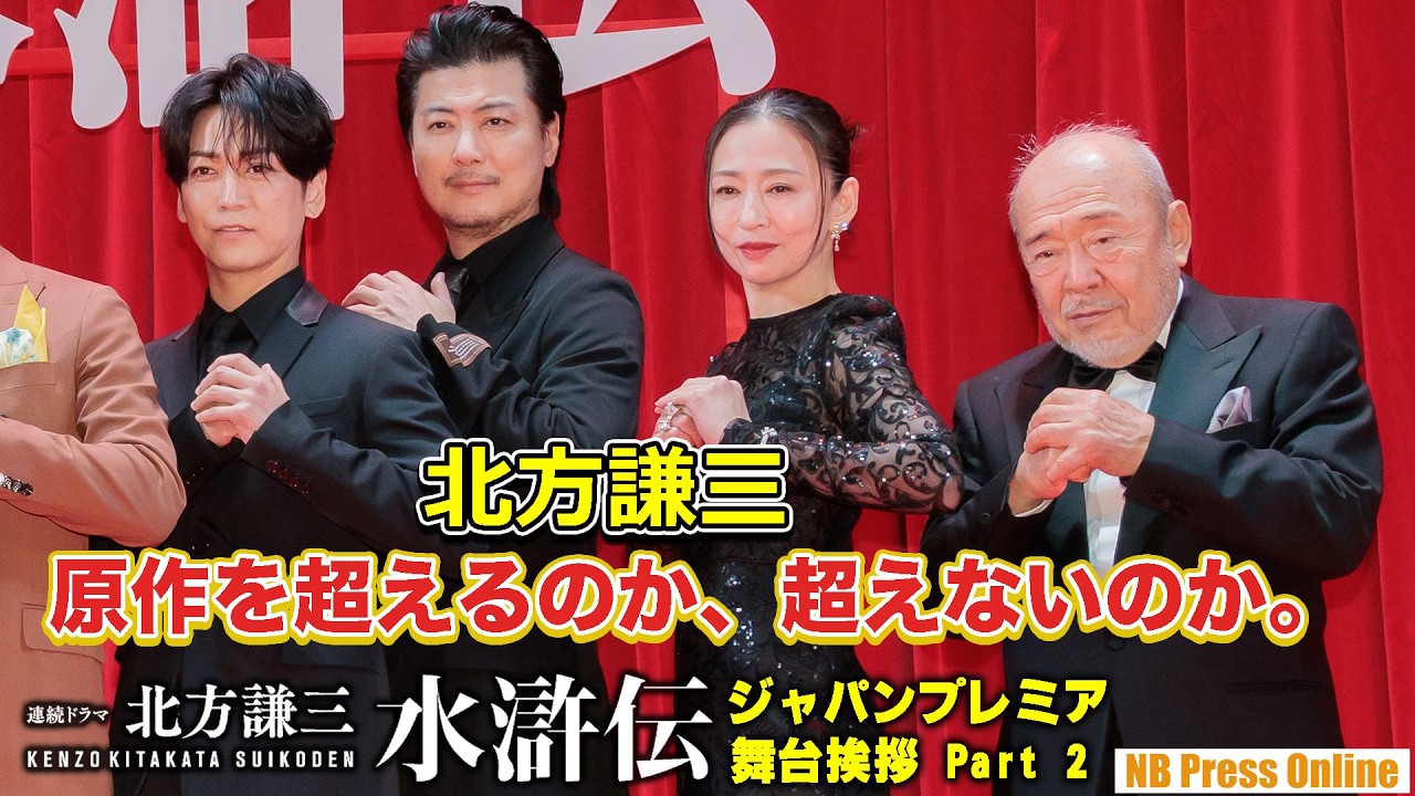 2026年2月9日、ヒューリックホール東京にて、連続ドラマ「北方謙三 水滸伝」ジャパンプレミア<舞台挨拶>が行われ、本作の世界観を体現したステージに、織田裕二、反町隆史、亀梨和也、満島真之介、波瑠、玉山鉄二、松雪泰子、佐藤浩市、北方謙三(原作)、若松節朗(監督)が登壇。本舞台挨拶は3本に分けて紹介。